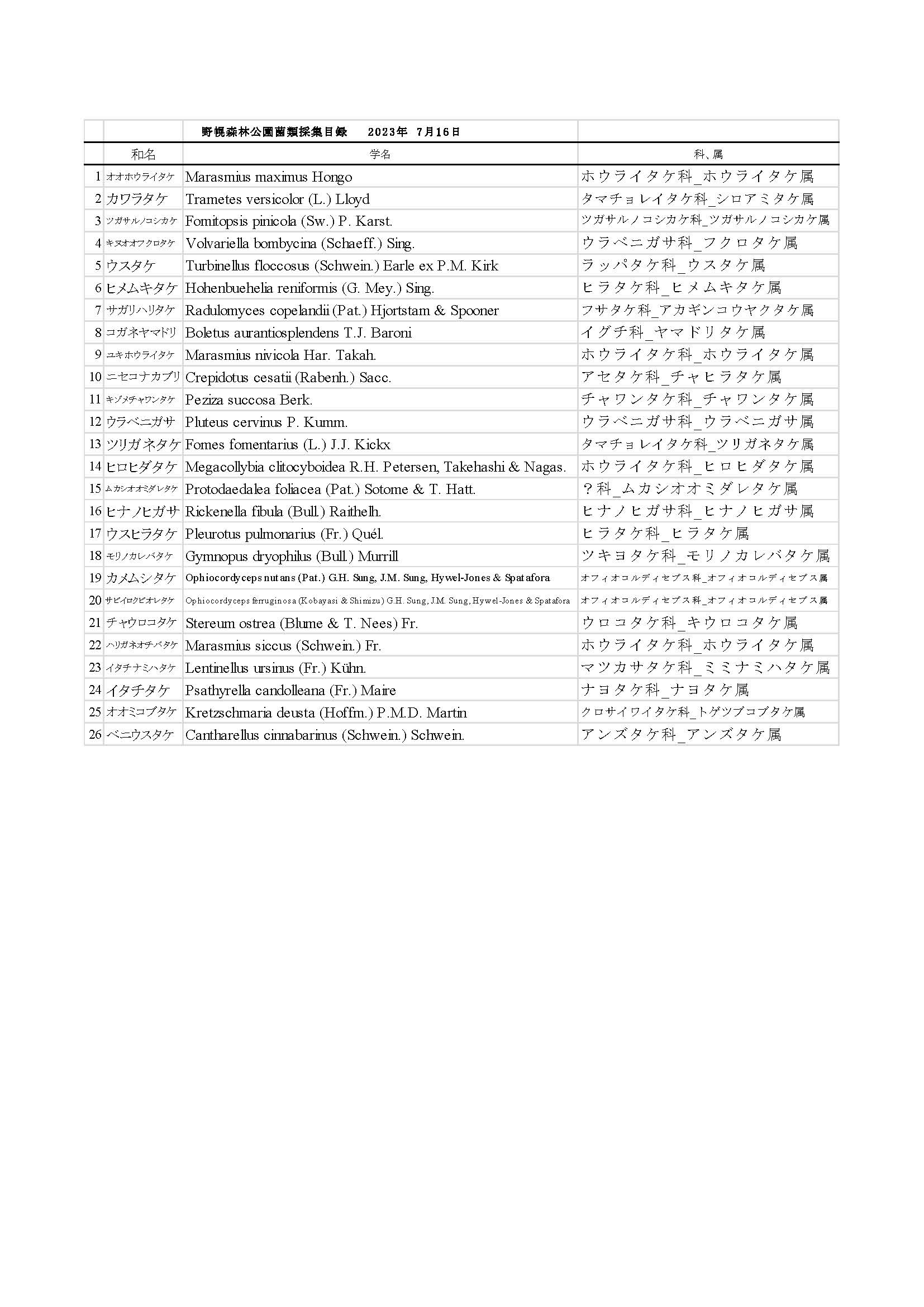 | 調査終了後キノコの確認作業。 |