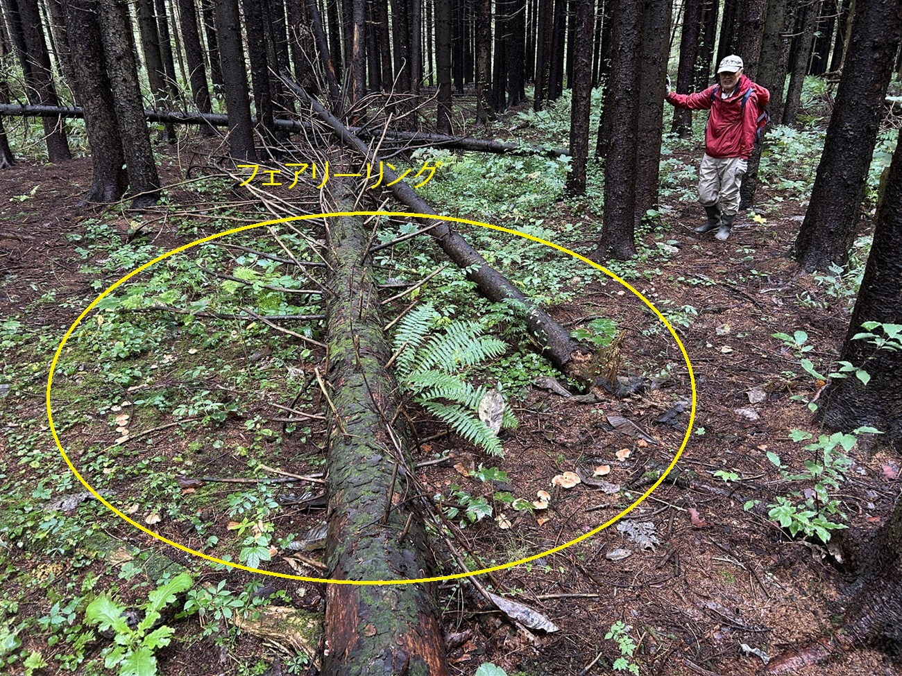 雨上がりのアカエゾマツ林、フェアリーリングがお出迎え。